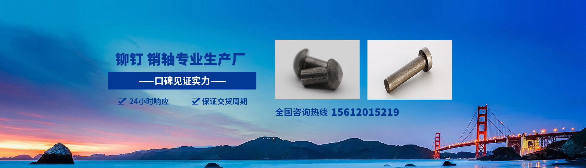 主要產(chǎn)品有:各種鉚釘、銷軸、圓頭鉚釘、平頭鉚釘、半空心鉚釘、汽車?yán)K鉤、開槽鉚釘、熱打鉚釘、打孔銷軸、鋁膜板銷釘、配套開口銷、鋁鉚釘、國標(biāo)21螺栓、法蘭面螺栓、凹空穴螺栓等。材料全部采用國家正規(guī)大廠材質(zhì),產(chǎn)品出產(chǎn)經(jīng)過嚴(yán)格檢驗(yàn),保證產(chǎn)品質(zhì)量。